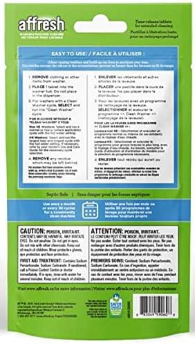 Affresh Washer Cleaner removes and prevents odor-causing residue that can occur in all brands of HE washers. While bleach only kills odor-causing bacteria leaving behind the detergent residue, Affresh Washer Cleaner uses surfactant chemistry to remove the root problem. Affresh cleaner is a formulated, slow-dissolve, foaming tablet that gets under residue, breaks it up, and washes it away leaving the washer smelling fresh and clean. Simply place one tablet in the wash basket (without clothes) and run a Normal Cycle (hot option) or Clean Washer Cycle. Affresh brand is safe on septic tanks, and safe for all washer components. Package includes 3 tablets.