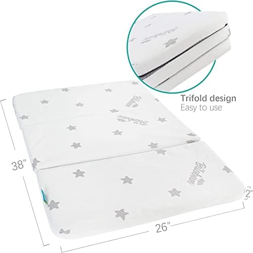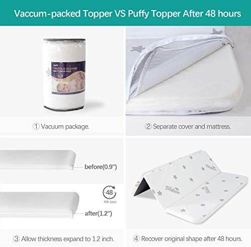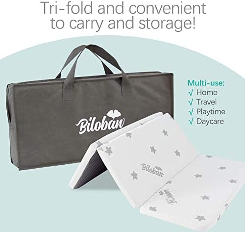 Tri-Fold Pack N Play Mattress: Tri-fold design allows you to easily fold up your mattress, so you can easy to use, store and travel with. Measures 38 x 26 x 2 inch with rounded corners to make sure the pack and play mattress can perfectly universal fit.