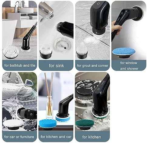 【Deep Cleaning for Bathroom & Kitchen】- This electric spin scrubber is equipped with 7 cleaning heads and can clean both bathroom & kitchen. The electric scrubber brush for cleaning helps you clean the stubborn stains and grouts in tub, tile and shower in bathroom, and clean sink, stove and countertop in kitchen