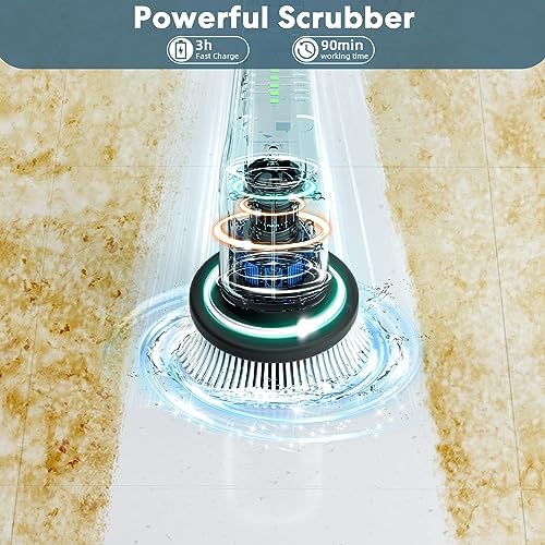 【Battery & Waterproof】- Power by a 3.7V battery, the electric scrubber can work for 60-90 minutes after 3 hours of fast charging. It displays remaining battery power so that you know when to charge. This bathtub scrubber is waterproof IPX5, so there is no worry about malfunction due to ingress of water