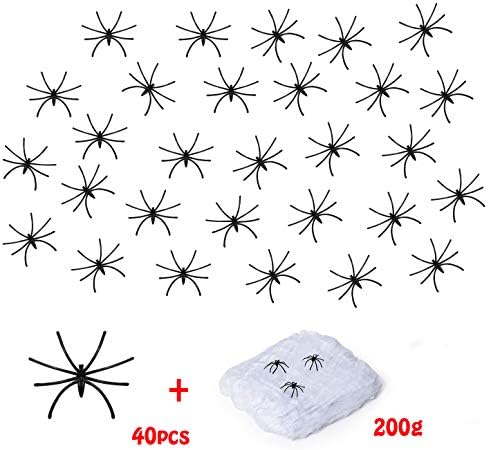 Perfect for a creepy, haunted look- White spider web looks like real cobwebs, with 40pcs spiders, really adding an eerie accent to your haunted house or Halloween party.