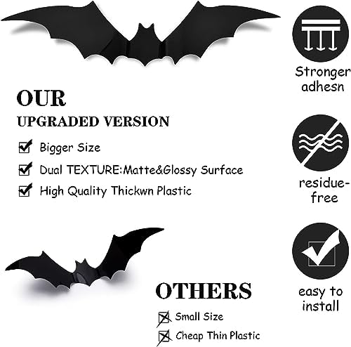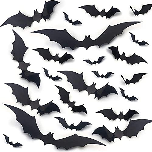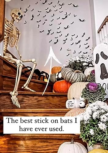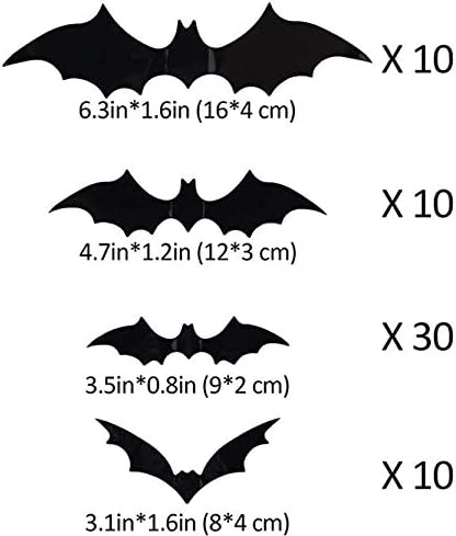 Material- This 60PCS Halloween 3D Bats stickers made of high quality PVC material, reusable and waterproof. You just need to get new adhesive squares to place on the back of bats again. It does not make the paint peeling off the wall.