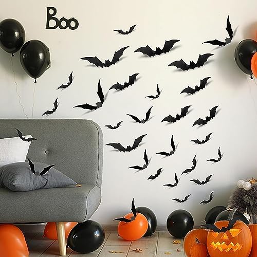 Halloween party decoration- Great for decorating a scary haunted house, you can stick these 3D bats on cabinets, bookshelf, walls, doors and windows.Ideal party supplies to suit your Halloween, Ghost Festival party atmosphere.