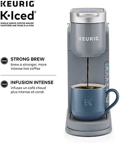 Introducing the new Keurig K-Iced coffee maker. Enjoy refreshingly delicious iced coffee and full-flavored hot coffee from one multitalented coffee maker. Always easy, always right. Craving an iced coffee? Just press the blue Brew Over Ice button and the K-Iced coffee maker automatically adjusts the brew temperature, starting hotter to extract full flavor, then cooling down to minimize ice melt. All for a vibrant, balanced iced coffee that never tastes watered down.