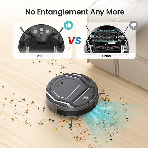 🌪️【Carpet Boost *& Quiet Cleaning】The M210 Pro robotic vacuum cleaner is optimized and can intelligently recognize the carpet and increase to maximum suction for optimal cleaning performance. The robot vacuum sucks with softer white noise, no more annoying your babies and pets.