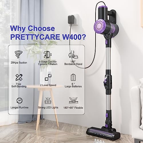 PRETTYCARE Cordless Vacuum Cleaner, 6 in 1 Stick Vacuum with 180° Bendable