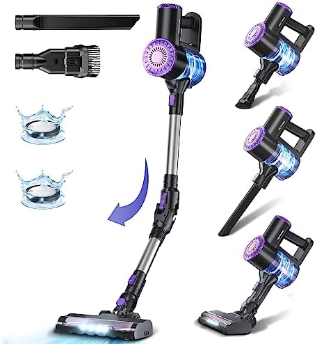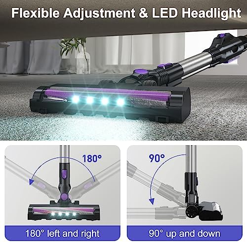 ❤️ [180° FOLDABLE BODY & ROTATING LED BRUSH HEAD ]:Unlike traditional vacuum cleaners, the body of the PRETTYCARE stick vacuum cleaner can be bent 180°. This makes it easier to clean under furniture, and other hard-to-reach places without bending over. 90°+180° rotatable design, flexible angle adjustment, change the cleaning direction easily. LED headlights effectively clean particles and dust in dark places which provide a deeper cleaning.