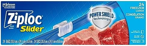 Keep your food fresh with Ziploc brand Slider Bags. Each bag features a slider closure and an expandable bottom that opens into a flat base, helping the bag stay upright so it’s easy to fill. Plus, these bags feature our Smart Zip seal—it lets you hear the bag close so you can feel confident your food is protected. Use it to keep your refrigerator and freezer organized, conquer meal prep, keep leftovers fresher for longer and to make the most of your freezer meals. These bags can also handle bulky items like cables, tools, and toys.